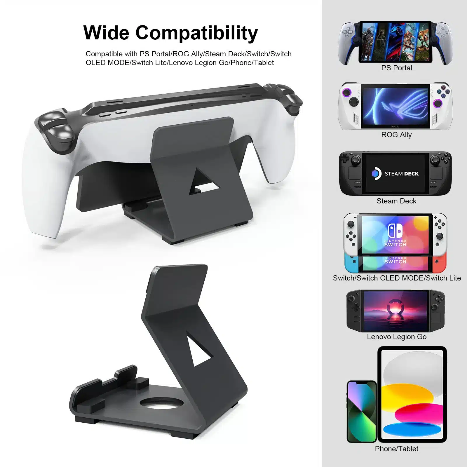 Laat jouw gaming setup stralen met deze stijlvolle metalen standaard voor je Playstation Portal! Met antislip-pads aan de onderkant staat je console als een rots, klaar voor urenlange gaming-avonturen. Maar dat is nog niet alles! Deze standaard is ook compatibel met andere toppers zoals de Steam Deck, ROG, Nintendo Switch, tablets en zelfs je mobiele telefoon.