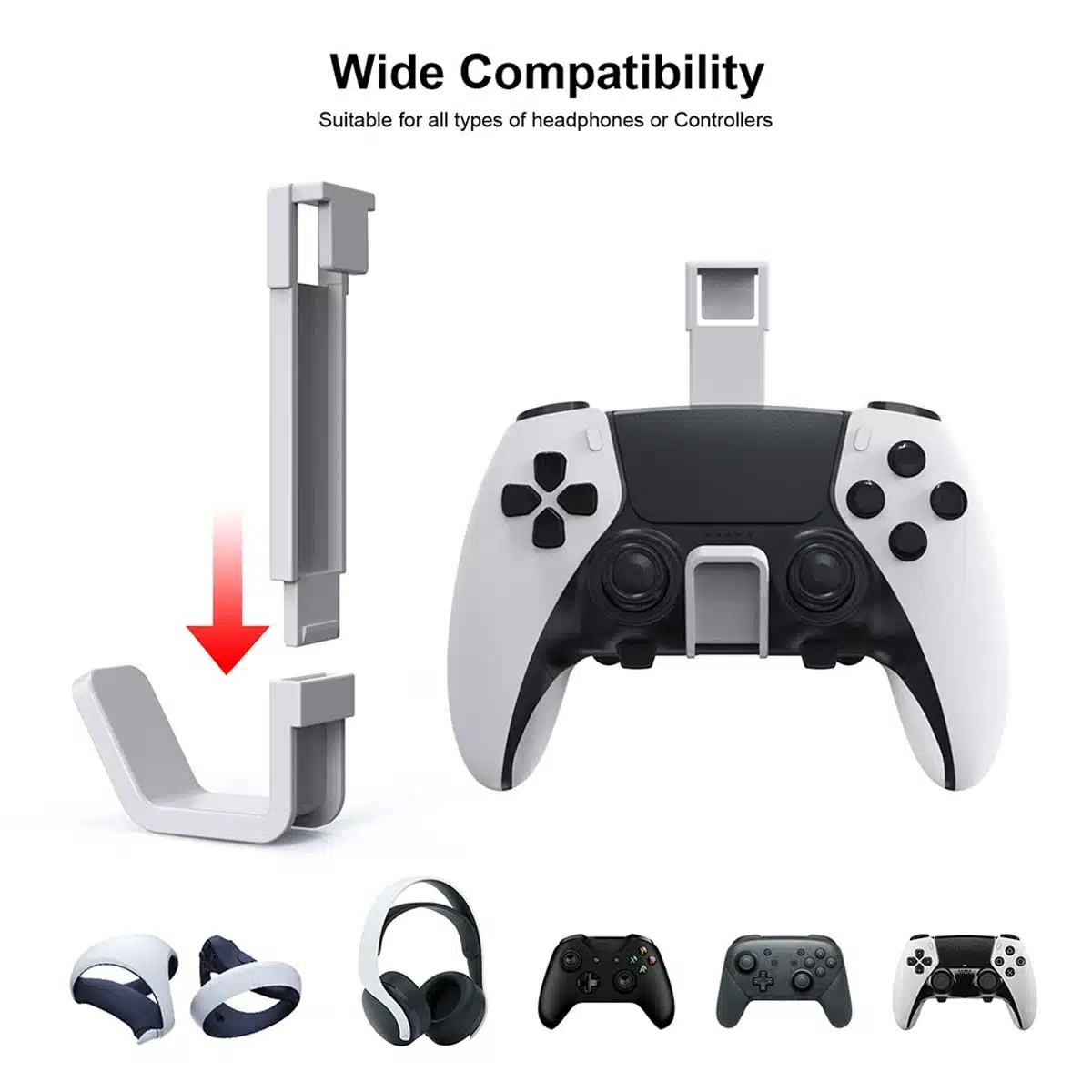 De haakhouder werkt naadloos samen met een breed scala aan controllers en hoofdtelefoons, waaronder PS5, PS5 Elite-controllers, Xbox Series X, PS4, Xbox One, Switch, PS VR en de meeste controllers en hoofdtelefoons van derden. Met gemakkelijke toegang tot je game-essentials kun je moeiteloos en zonder vertragingen in je gamesessies duiken.