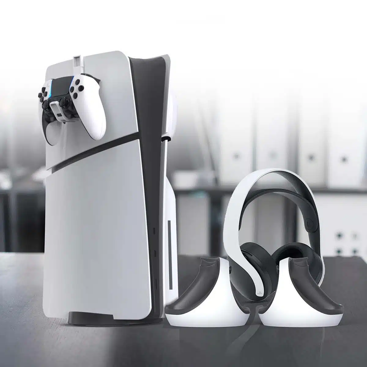 Organiseer je gaming setup als nooit tevoren met onze Gaming Headset/Controller Houder! Deze ruimtebesparende houder, uitgerust met stabiele display stand en handige haak, is dé oplossing voor het opbergen van je PS5 controller en koptelefoon. De haak is niet alleen compatibel met PS5/PS5 Slim, maar ook met diverse andere gaming consoles, waardoor veelzijdigheid en gemak samenkomen.