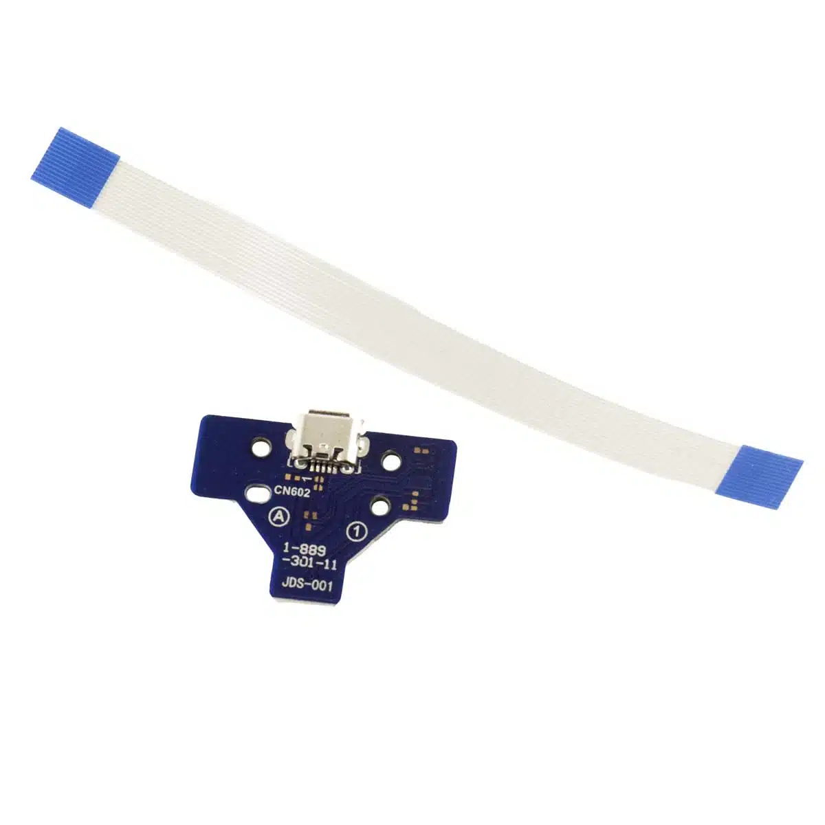 Inhoud van de set: 1x USB poort board met 1x ribbon cable van de PS4-controller, zorgvuldig geselecteerd door Game Essentials voor een soepele vervanging en optimale werking van je controller.
