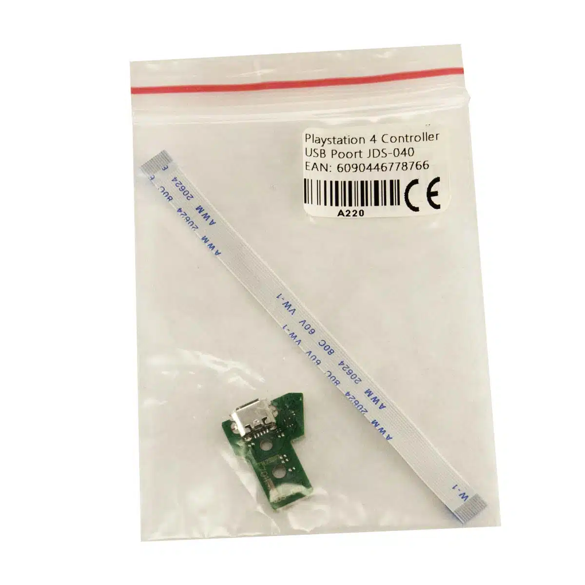 Inhoud van de set: 1x USB poort board met 1x ribbon cable van de PS4-controller, zorgvuldig geselecteerd door Game Essentials voor een soepele vervanging en optimale werking van je controller.