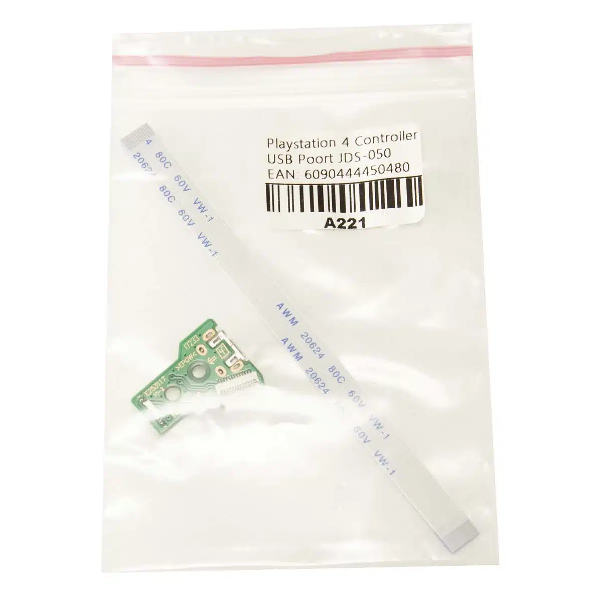 Inhoud van de set: 1x USB poort board met 1x ribbon cable van de PS4-controller, zorgvuldig geselecteerd door Game Essentials voor een soepele vervanging en optimale werking van je controller.