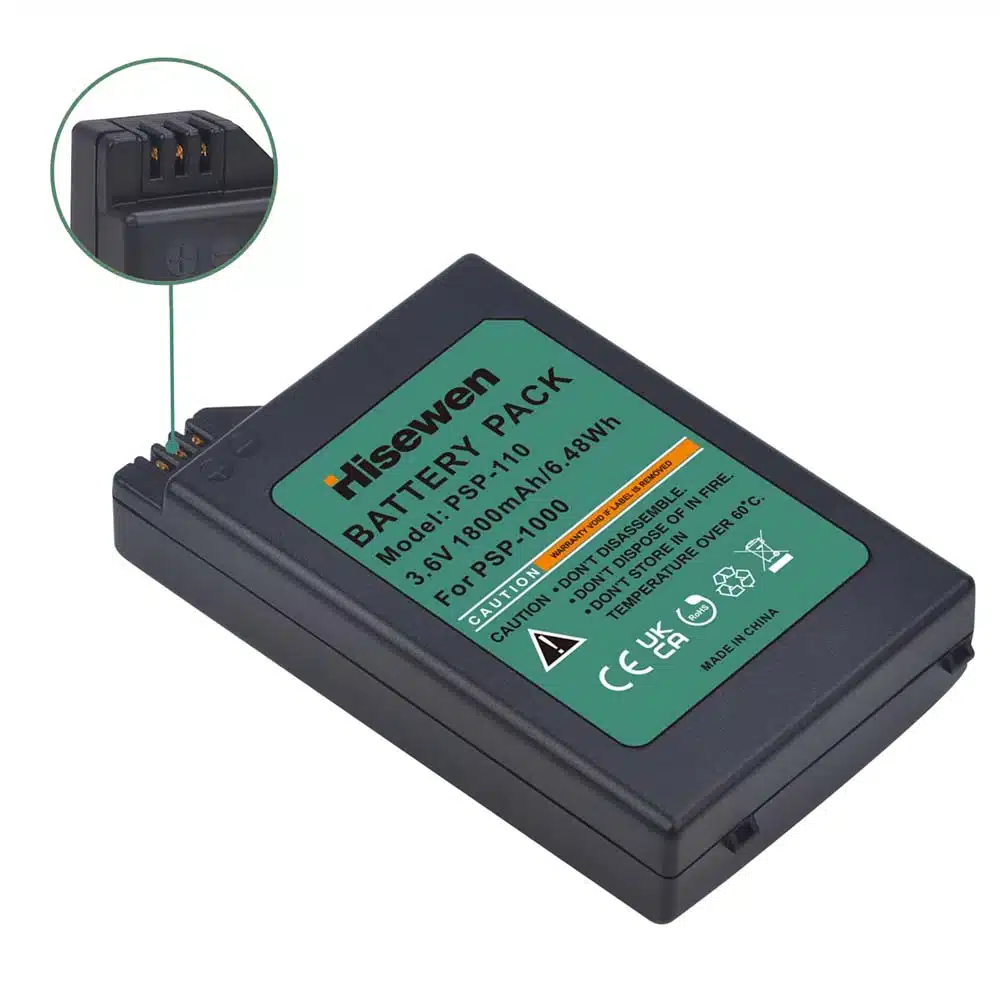 Is de batterij of accu van je PSP 1000 snel leeg of houdt deze geen lading meer vast? Met deze Hisewen 1800mAh lithium-ion vervangingsbatterij (accu) geef je jouw handheld weer een langere speeltijd en betrouwbare prestaties.