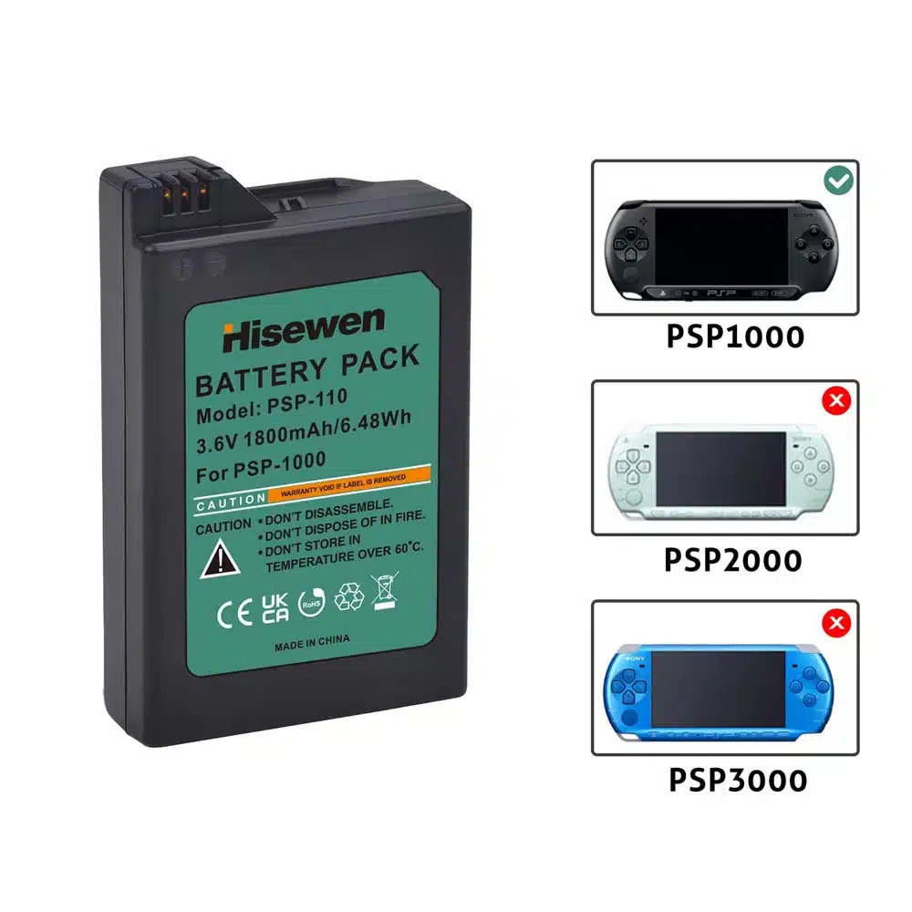 - 1 × Hisewen 1800mAh lithium-ion batterij / accu voor PSP 1000